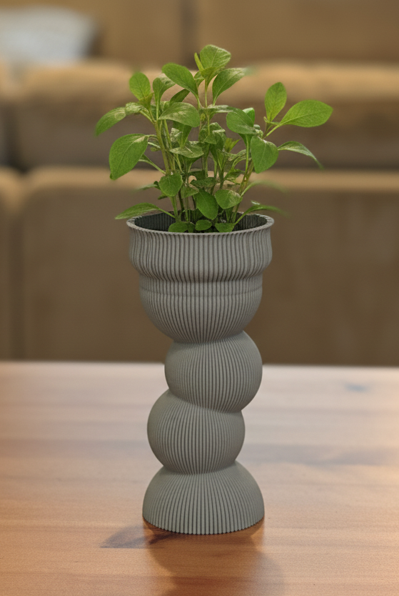 Most of our products are crafted using high-quality, eco-friendly PLA filament. PLA (Polylactic Acid) is a plant-based, biodegradable thermoplastic known for its smooth texture and durability. Most vases include a waterproof PETG insert.