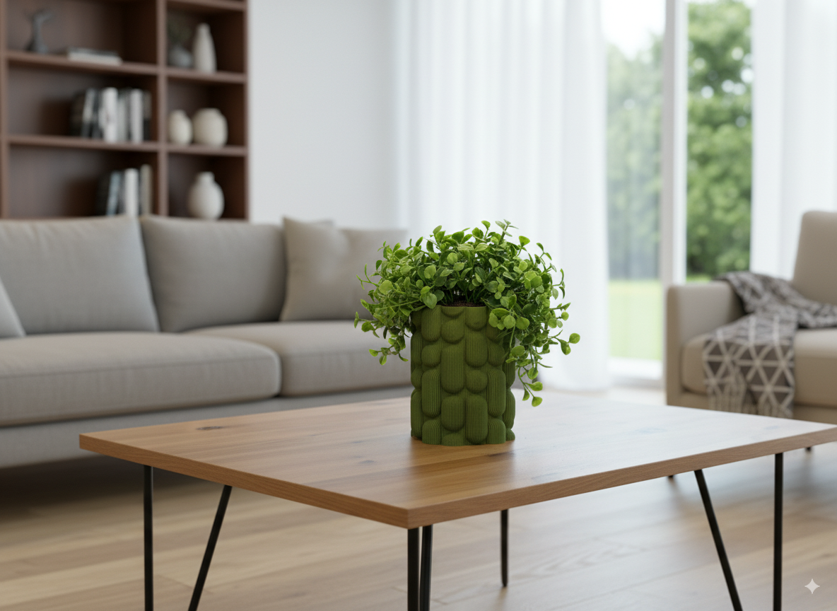 Most of our products are crafted using high-quality, eco-friendly PLA filament. PLA (Polylactic Acid) is a plant-based, biodegradable thermoplastic known for its smooth texture and durability. Most vases include a waterproof PETG insert.