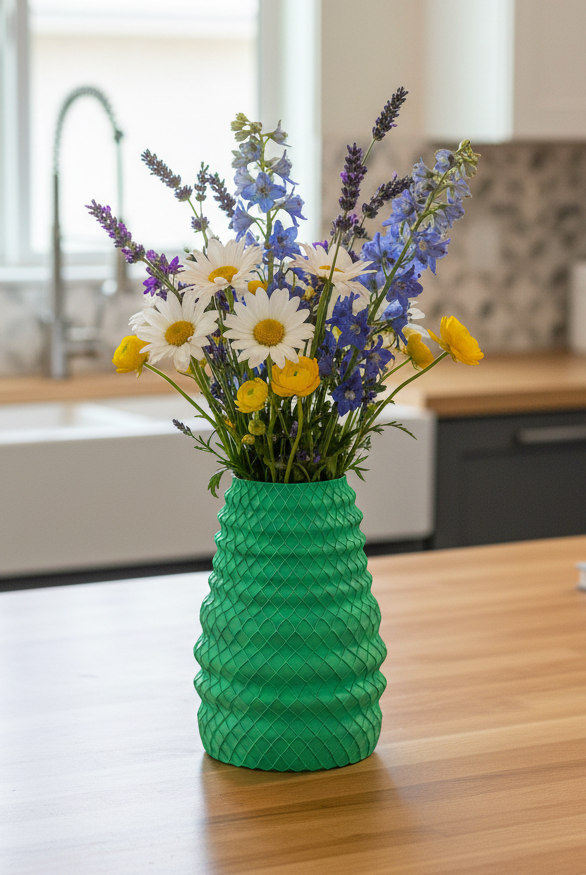 Most of our products are crafted using high-quality, eco-friendly PLA filament. PLA (Polylactic Acid) is a plant-based, biodegradable thermoplastic known for its smooth texture and durability. Most vases include a waterproof PETG insert.